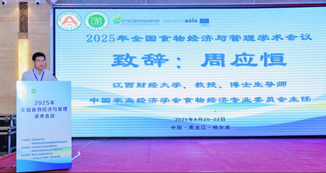 8月20-22日,2025年全国食物经济与管理学术会议在哈尔滨隆重举行。本次会议由东北农业大学、中国农业经济学会食物经济专业委员会共同主办,东北农业大学经济管理学院、中国农业科学院农业经济与发展研究所承办。来自中国人民大学、中国农业科学院、中国农业大学、浙江大学、吉林大学、西北农林科技大学、南京农业大学、扬州大学、江西财经大学、东北财经大学、安徽农业大学、上海海洋大学、天津科技大学等高校和科研单位的120余人参会。我院周应恒教授、张利国教授,以及当代财经杂志社陈苏副教授参加了此次会议。