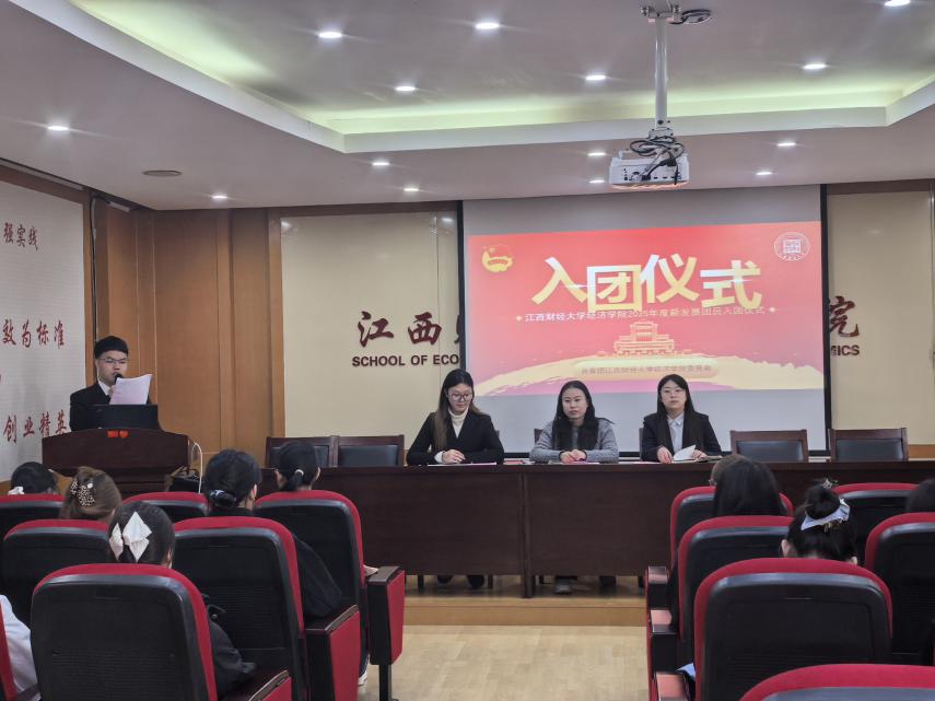 为加强新团员的光荣感、责任感和组织归属感,思想引领,增强共青团组织的凝聚力和战斗力,2025年12月10日,经济学院举行新团员入团仪式,学院团委书记万婧怡、团委学生干部及新发展团员出席仪式,共有50名优秀青年学子光荣加入中国共产主义青年团。