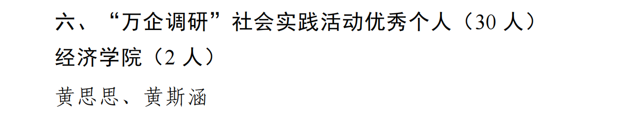 “万企调研”社会实践活动优秀个人