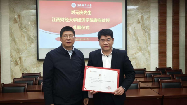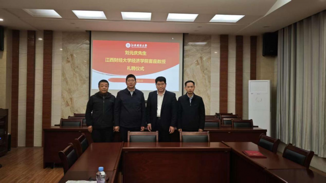 2025年12月3日下午,我院为梅州客商银行董事长刘元庆举办了客座教授礼聘仪式。院长张利国、副院长曾永明、党政办公室主任郭勇出席会议。
