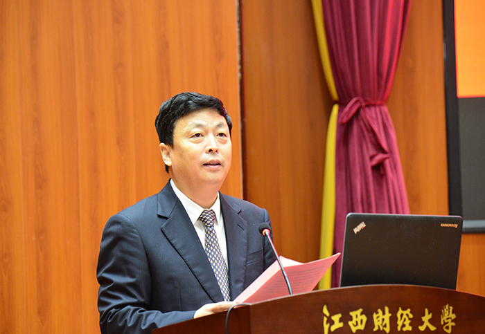王乔书记在致辞中指出,江西财经大学是一所财政部、教育部、江西省人民政府共建的财经类高校,在国内享有良好的声誉和地位,拥有7个一级博士学位授权点。在全国第四轮学科评估中,应用经济学、统计学获评A-等级,工商管理获评B+等级,理论经济学、管理科学与工程、法学获评B等级。江西财经大学要充分发挥学科优势,尤其是要加强理论经济学学科建设并发挥其科研优势,集全校之力加强学科联合,以习近平新时代中国特色社会主义思想为指导,加强习近平经济思想研究,科学研判当前经济形势,强化研究重大理论问题,加快形成推动高质量发展的指标体系、政策体系、标准体系、统计体系、绩效评价、政绩考核。率先进行习近平新时代中国特色社会主义经济思想的研究,力争走在全国前列,形成习近平经济思想研究的“江财学派”,为全面建成小康社会、全面建设社会主义现代化强国贡献智慧和力量!随后,王乔书记和洪银兴教授共同为“江西财经大学习近平经济思想研究院”揭牌,并为洪银兴教授颁发了研究院顾问聘书。