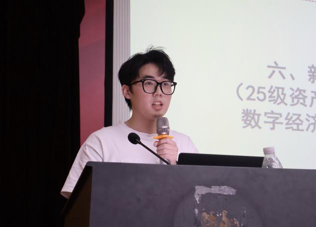 25级资产评估班陈新斌、数字经济252班宋子鑫作为新生代表发言,表达了对大学生活的期待与奋进决心,展现出经院新生的青春朝气。