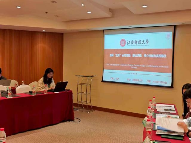 会议主要分为专家主旨报告和平行论坛上下两场。上午的主旨报告环节,来自西安财经大学、中国社会科学院、北京师范大学、浙江农林大学、生态环境部环境规划院生态环境管理与政策研究所、浙江理工大学、北京理工大学、中国农业大学、浙江大学、北京林业大学等十二位专家学者以“美丽中国建设与两山理念”为主题分别就自身当前研究领域做了精彩分享。下午的平行论坛,分别围绕生态文明与“两山”理念、新质生产力与高质量发展、“双碳”目标与生态环境、“双碳”目标与生态环境四个议题展开。黄和平教授全程主持了平行论坛(一)——生态文明与“两山”理念分论坛。我院博士生石冉在平行论坛四“城市建设与生态农业”做了题为《森林“五库”协同增效:理论逻辑、核心机制与实践路径》的专题报告;硕士生何飞雪受邀在平行论坛一“生态文明与“两山”理念”做了题为《基于生态消费视角的生态产品价值实现潜力与影响因素研究——以鄱阳湖南矶湿地国家级自然保护区为例》的专题报告,并分别在会场内听取了专家学者的意见和建议。