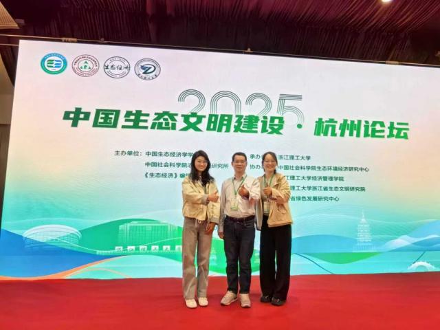 2025年10月24日至26日,由中国生态经济学学会、中国社会科学院农村发展研究所和《生态经济》编辑部主办,浙江理工大学承办以及中国社会科学院生态环境经济研究中心、浙江理工大学经济管理学院、浙江理工大学浙江省生态文明研究院和浙江省绿色发展研究中心共同协办的“2025年中国生态文明建设”论坛在杭州市顺利召开。会议的主题是探讨生态文明建设领域的最新研究进展与发展趋势,来自北京交通大学、中南财经政法大学、中央民族大学、中国海洋大学、华中农业大学、中国社会科学院大学、江西财经大学等多所高校和研究机构100多名师生围绕“两山”理念与生态产品价值实现机制、双碳目标与生态环境、新质生产力与高质量发展、美丽中国建设制度保障与实践历程以及“十五五”生态文明建设规划构想等主题进行了深入的交流研讨。“百人计划学科领军人才”黄和平教授携24级人口、资源与环境经济学博士生石冉和23级资产评估硕士生何飞雪应邀参加了此次会议。