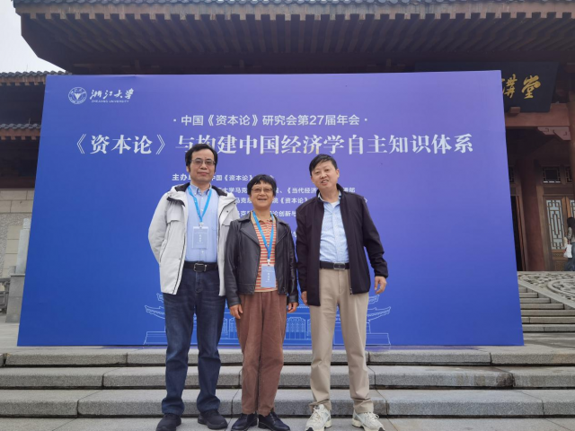 2025年11月8-9日,由中国《资本论》研究会主办,浙江大学马克思主义学院、《当代经济研究》编辑部、浙江大学马克思主义学院《资本论》与当代经济研究中心联合承办,浙江大学马克思主义理论创新与传播研究中心、《浙江社会科学》杂志社与《浙江大学学报(人文社会科学版)》编辑部协办的中国《资本论》研究会第27届年会在浙江大学成功举行,本届年会主题为《资本论》与构建中国经济沉迷自主知识体系。我院康静萍教授、许光伟教授、刘爱文教授受邀参加了本届年会。