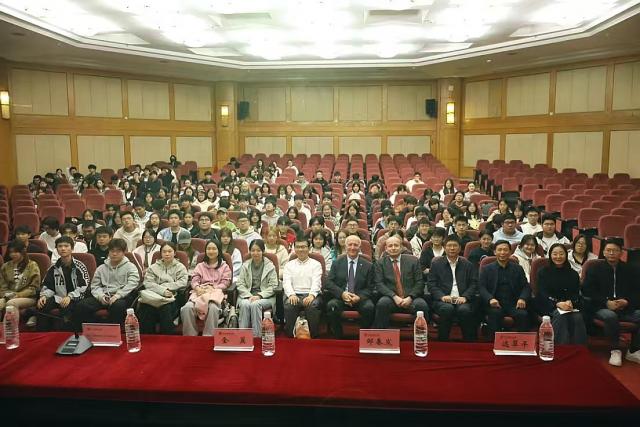 School of Economics Hosts Meeting with Partner Institutions for Digital Economy Program On the afternoon of November 10, 2025, the School of Economics solemnly hosted a meeting with partner institutions for the China-Russia “3+1” Digital Economy Program in the International Academic Lecture Hall. Attendees included Mr. Dmitry Vasilenko, Vice President of Saint Petersburg State University of Economics; Mr. Jin Yi, Vice President; Zhang Liguo, Dean of the School of Economics; Zou Chunfa, Party Secretary; and all students of the Class of 2025. The meeting was chaired by Yuan Cuiping, Deputy Party Secretary. In his address, Mr. Dmitry Vasilenko emphasized the enduring friendship between China and Russia, encouraging students to actively engage in bilateral cooperation and contribute to deepening exchanges between the two nations. He provided a detailed overview of the program's distinctive educational features and curricular strengths.