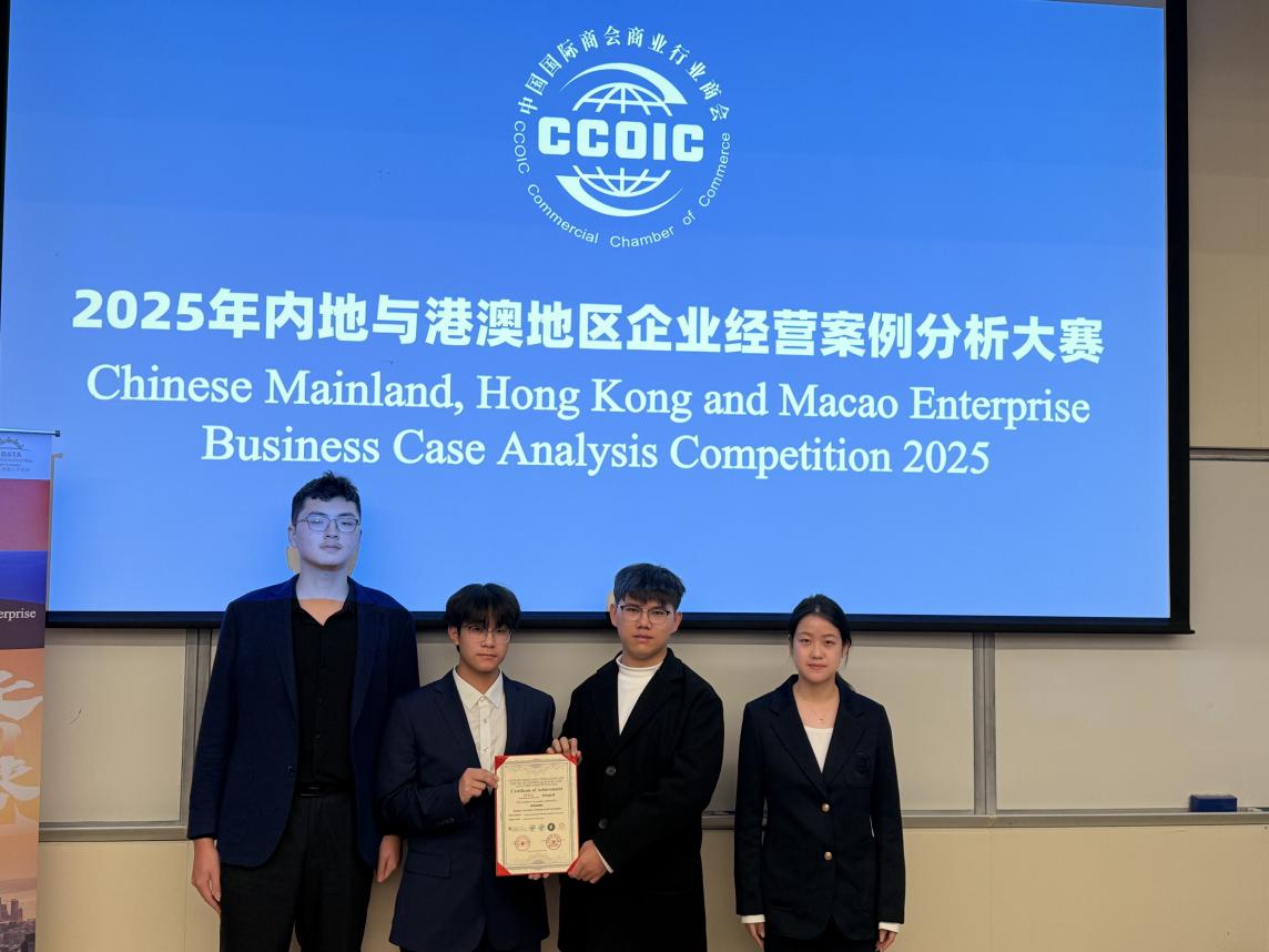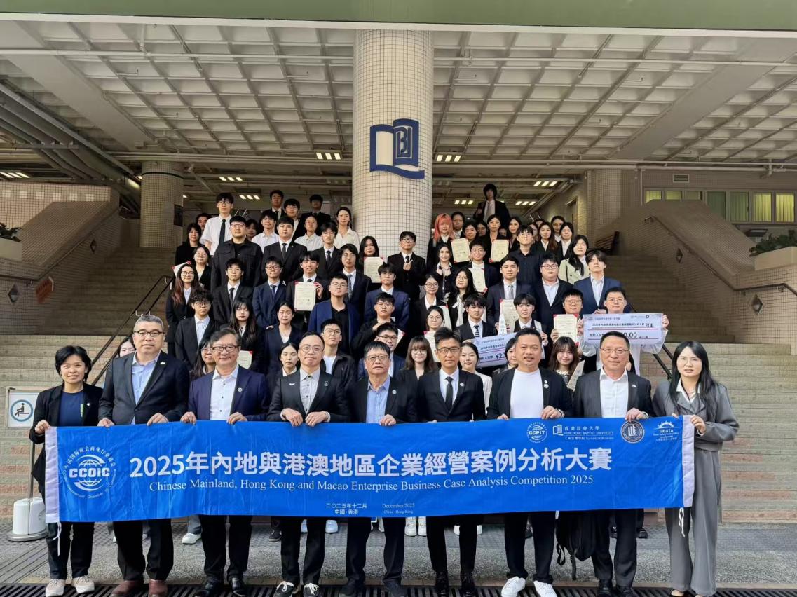 本次大赛由香港浸会大学、中国国际贸易促进委员会商业行业委员会等机构联合主办,聚焦内陆与港澳地区企业商业发展实践,是检验高校商科学生专业素养与实践能力的重要赛事,吸引了香港中文大学,澳门科技大学多所高校的优秀队伍参赛交流,以赛促学。